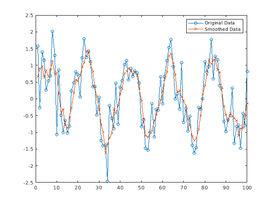 B = smoothdata(A)B = smoothdata(A,dim)B = smoothdata(___,method)B = smoothdata(___,method,window)B = smoothdata(___,nanflag)B = smoothdata(___,Name,Value)[B,window]