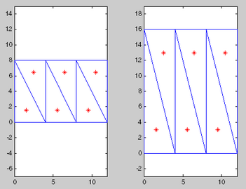 x = [0 4 8 12 0 4 8 12]'; y = [0 0 0 0 8 8 8 8]'; dt = DelaunayTri(x,y)