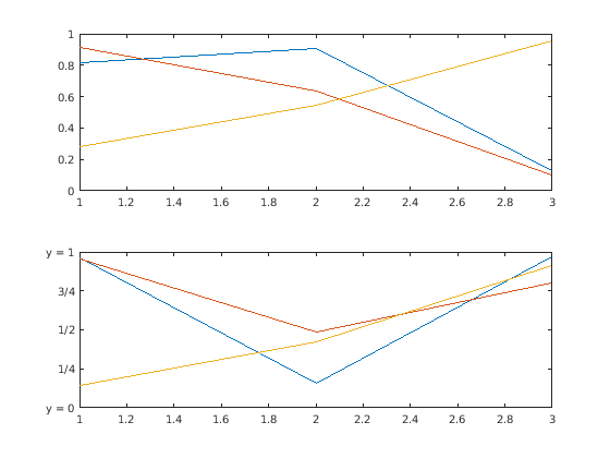 yticklabels('manual') устанавливает ручной режим, замораживая метки в виде галочки оси Y в текущих значениях.