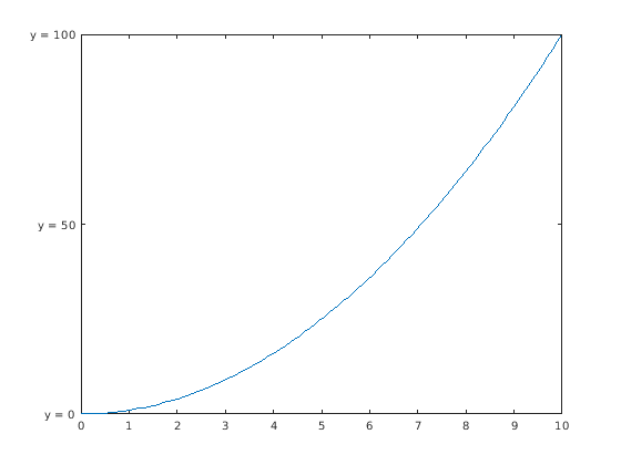 возвращает текущие значения деления оси Y как вектор.yt = yticks