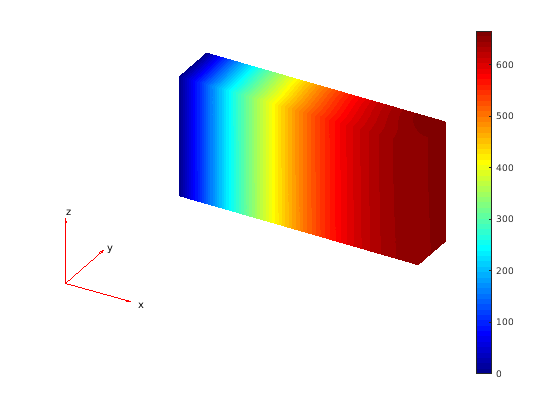 pdeplot3D(model,'ColorMapData',results.NodalSolution)