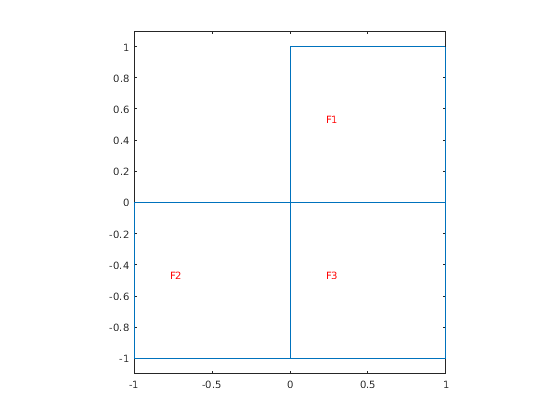 model = createpde(); geometryFromEdges(model,@lshapeg); pdegplot(model,'FaceLabels','on') axis equal ylim([-1.1,1.1])