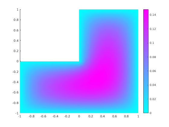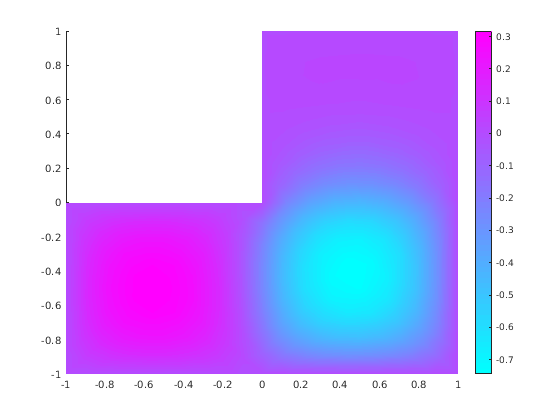 model = createpde(); geometryFromEdges(model,@lshapeg); specifyCoefficients(model,'m',0,... 'd',0,... 'c',1,... 'a',0,... 'f',1);