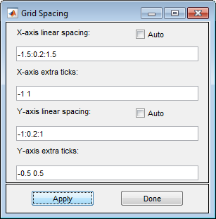 Установите интервал сетки для x - оси к -1.5:0.1:1.5 и для y - ось к -1:0.1:1. Для этого выберите Options> Grid Spacing, снимите флажки Auto и установите соответствующие области значений.