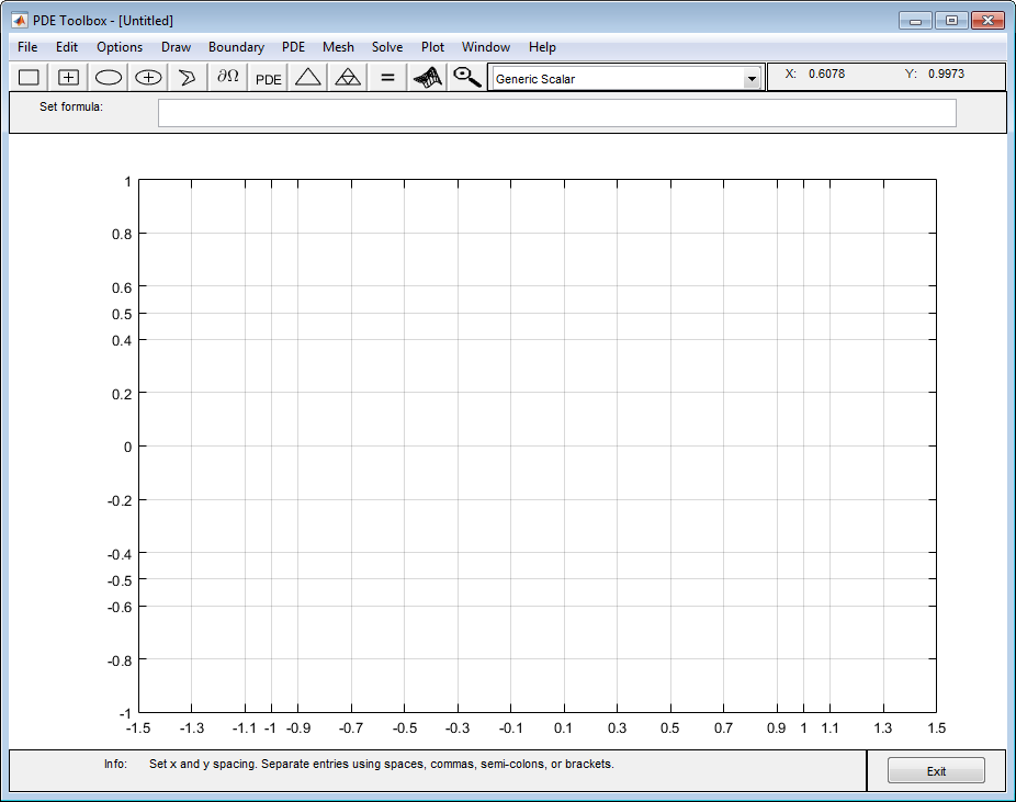 Откройте приложение PDE Modeler при помощи команды pdeModeler.