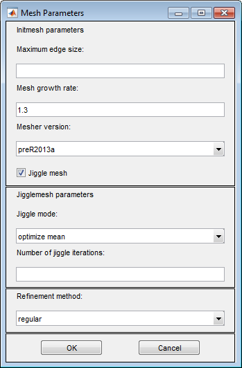 Mesher version: Выбирает алгоритм триангуляции геометрии. R2013a быстрее, и может поймать в сети больше конфигураций. preR2013a дает ту же mesh как предыдущие версии тулбокса.