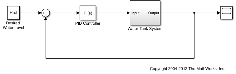 Исходная модель для этого примера является моделью бака для воды. Цель состоит в том, чтобы управлять уровнем воды в корпусе. Для получения дополнительной информации о модели бака для воды, см. watertank Модель Simulink.