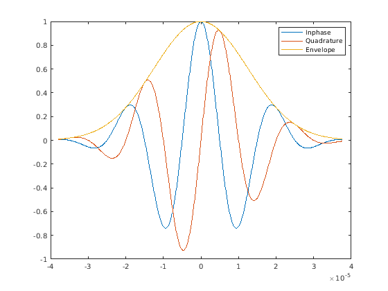 [yi,yq,ye] = gauspuls(___) возвращает конверт сигнала РФ.