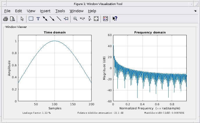 Увеличение β расширяет mainlobe и уменьшает амплитуду боковых лепестков (т.е. увеличивает затухание).