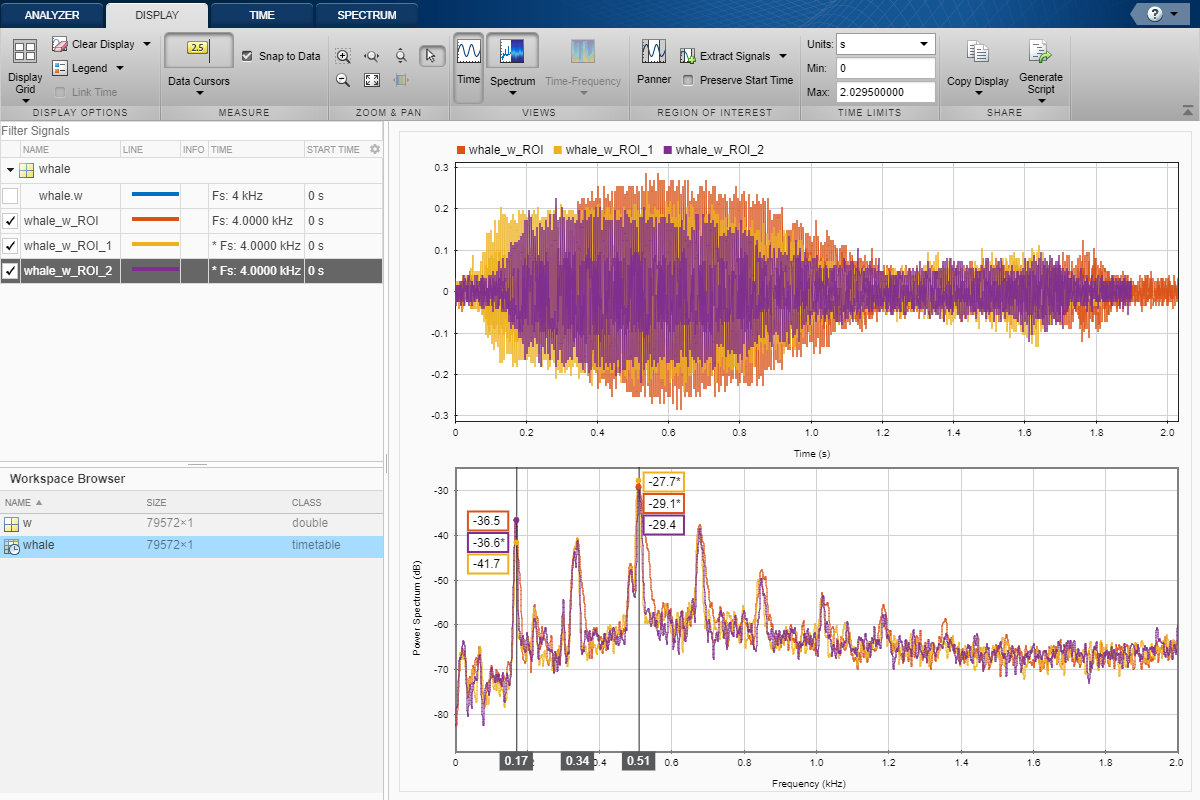 Вычислите спектры мощности неоднородно выбранных сигналов или сигналов с недостающими выборками с помощью метода Lomb-Scargle. Измерьте общие черты сигнала в частотном диапазоне путем оценки их спектральной когерентности. Разработайте и анализируйте Хэмминга, Кайзера, Гауссовы, и другие окна данных.