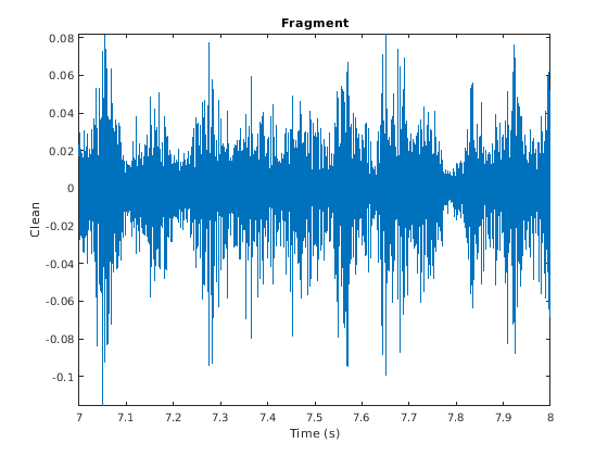 plot(snip/Fs,Fragment) xlabel('Time (s)') ylabel('Clean') title('Fragment') axis tight