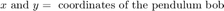 Маятник Фуко описан системой двойных приведенных ниже дифференциальных уравнений. Трение и аэродинамическое сопротивление не учтены (это значительно упрощает уравнения). Полная деривация этих уравнений дана в примере Маятника Фуко.