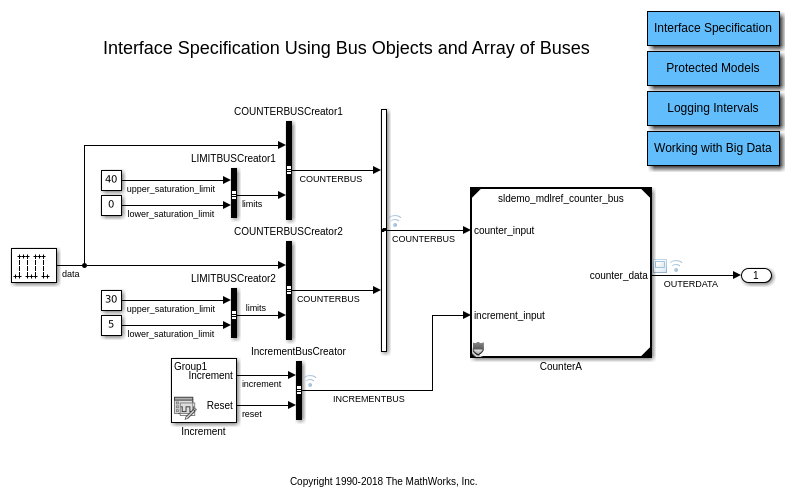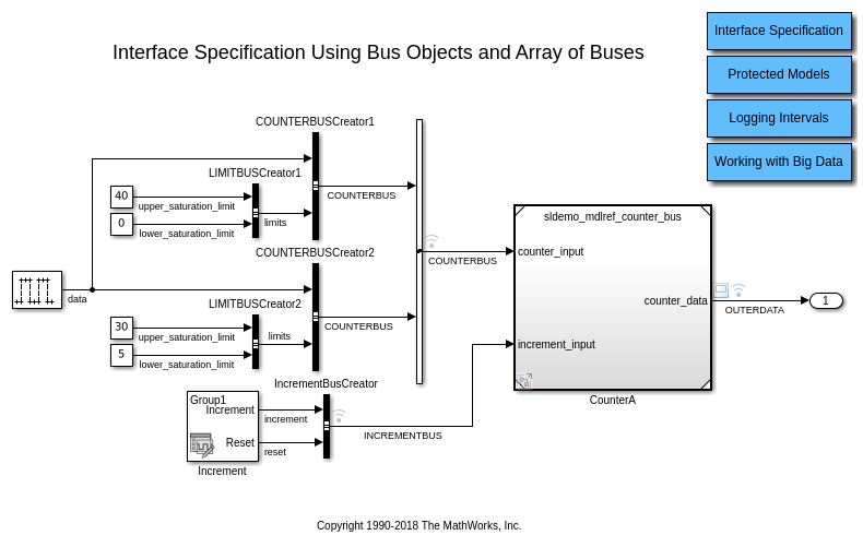 Чтобы моделировать модель, которая ссылается на защищенную модель, вы можете должны быть задать переменные в базовом рабочем пространстве. Например, для защищенной модели, sldemo_mdlref_counter_bus, нужны переменные базового рабочего пространства, которые задают шины в корневых портах ввода и вывода модели. Когда вы поставляете защищенную модель, необходимо включать определения необходимых переменных, или модель неприменима. Команда protect генерирует защищенную модель и определяет необходимые переменные. Например: