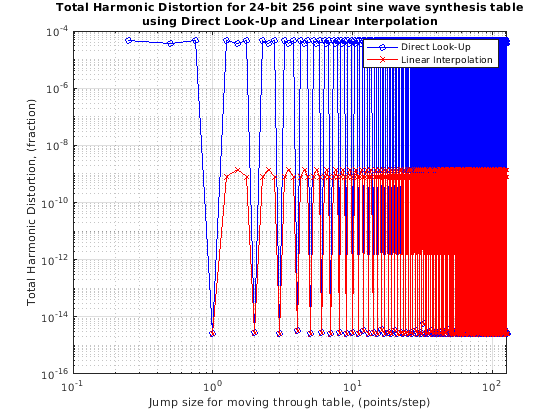 Реализуйте синус фиксированной точки или волну косинуса использование подхода интерполяционной таблицы, который использует симметрию волны четверти