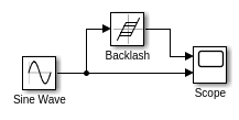 Этот пример показывает эффект блока Backlash на синусоиде с помощью параметров по умолчанию. Начальной шириной Мертвой зоны является 1 и Initial, выводом является 0.