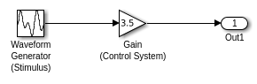 Чтобы быстро определить ответ системы к различным типам входных параметров, можно отличаться выходной сигнал блока Waveform Generator, в то время как симуляция происходит.