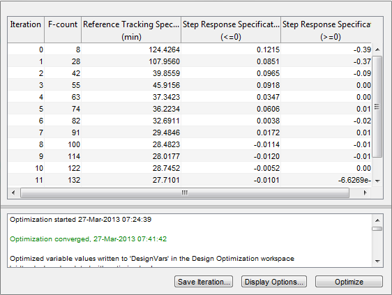 Задайте конструктивные требования и оптимизируйте параметры модели Simulink® в инструменте Response Optimization, или в командной строке. Можно оптимизировать временной интервал и конструктивные требования частотного диапазона одновременно, с помощью образцовых блоков верификации, или пользовательских ограничений и функций стоимости. Можно также включить неуверенность параметра, чтобы протестировать робастность проекта. Программное обеспечение оптимизирует параметры модели путем формулировки конструктивных требований как ограниченной проблемы минимизации, и затем решает проблему с помощью методов оптимизации.