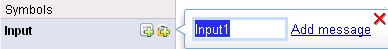 Чтобы создать вход сообщения, наведите на Вход на боковой панели Символов, кликните по добавить значку сообщения и введите имя сообщения.