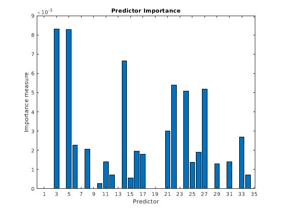 Выполните различные типы выбора функции. Например, можно сравнить точность модели, обученной с помощью набора предикторов с точностью одного обученного на подмножестве или различного набора тех предикторов. Можно выбрать набор предикторов произвольно или использовать метод выбора функции, такой как PCA или последовательный выбор функции (см. pca и sequentialfs).
