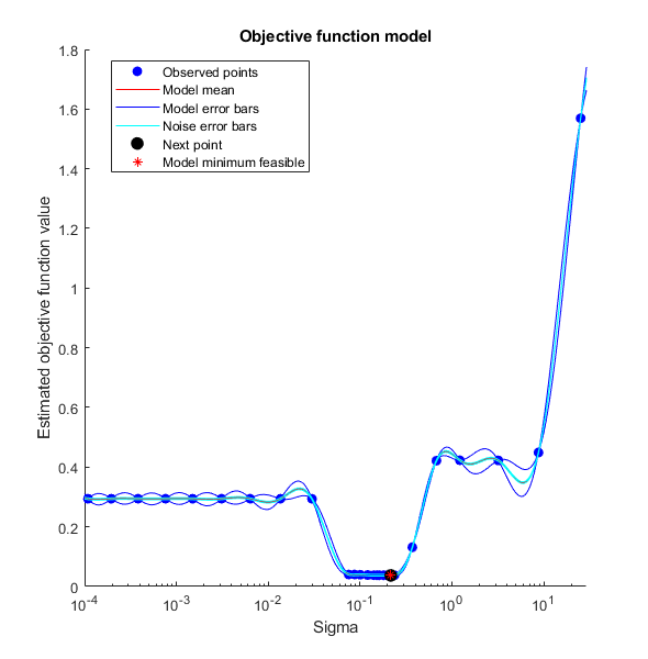 sigma0 = 0.2; kparams0 = [3.5, 6.2]; gprMdl2 = fitrgp(x,y,'KernelFunction','squaredexponential',... 'KernelParameters',kparams0,'Sigma',sigma0);