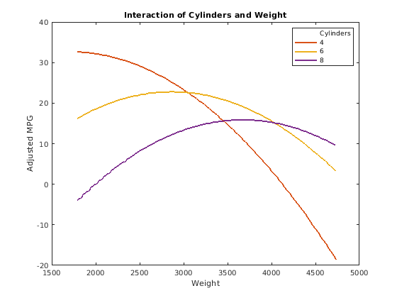 Например, чтобы задать модель взаимодействия использование fitlm с матричными предикторами: