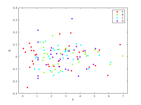 figure() gscatter(F,R,Program)