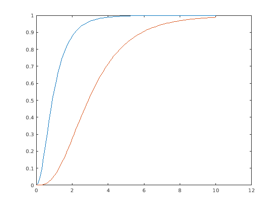 p = ncfcdf(x,nu1,nu2,delta) вычисляет нецентральный F cdf в каждом значении в x с помощью соответствующих степеней свободы числителя в nu1, степеней свободы знаменателя в nu2 и положительных параметров нецентрированности в delta. nu1, nu2 и delta могут быть векторами, матрицами или многомерными массивами, которые имеют тот же размер, который является также размером p. Скалярный вход для x, nu1, nu2 или delta расширен до постоянного массива с теми же размерностями как другие входные параметры.