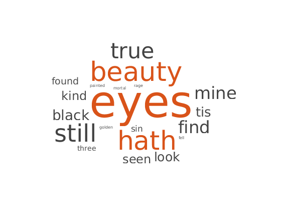 k = 20; topicIdx = 1; tbl = topkwords(mdl,k,topicIdx)