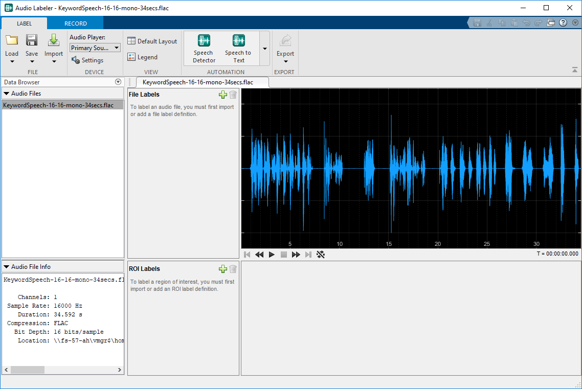 Командная строка MATLAB: Введите audioLabeler.