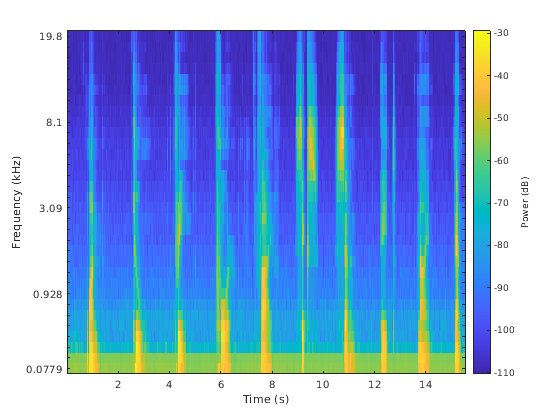 [audioIn,fs] = audioread('Counting-16-44p1-mono-15secs.wav'); S = melSpectrogram(audioIn,fs); [numBands,numFrames] = size(S); fprintf("Number of bandpass filters in filterbank: %d\n",numBands)