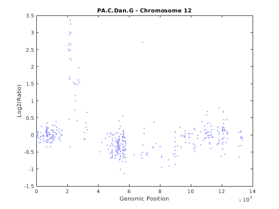 Загрузите и отобразите log2 данные об отношении на графике хромосомы 12 от демонстрационного PA.C.Dan.G.