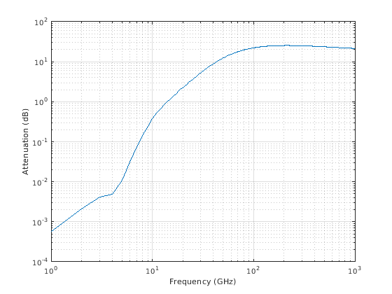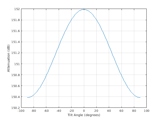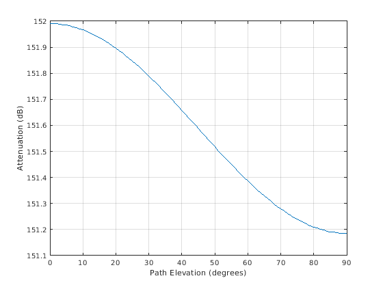 возвращает затухание сигнала, L = rainpl(range,freq,rainrate)L, из-за ливня. В этом синтаксисе затухание является функцией длины пути прохождения сигнала, range, частота сигнала, freq, и лейтесь уровнем, rainrate. Угол вертикального изменения пути и углы наклона поляризации приняты, чтобы обнулить.