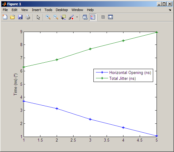 Можно также удалить измерения из отображения графика. В Measurements selector выберите Random Jitter и Deterministic Jitter. Объектные обновления графика, удаляя эти два измерения.