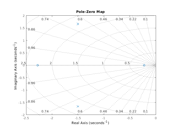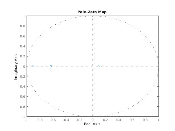 sys)sys динамической системы непрерывного или дискретного времениX и o указывает на полюса и нули соответственно, как показано в следующем рисунке.