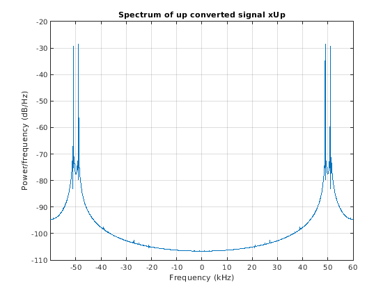 dsp.DigitalDownConverter объект переводит цифровой сигнал из полосы промежуточной частоты (IF) к основной полосе и десятикратно уменьшает его.
