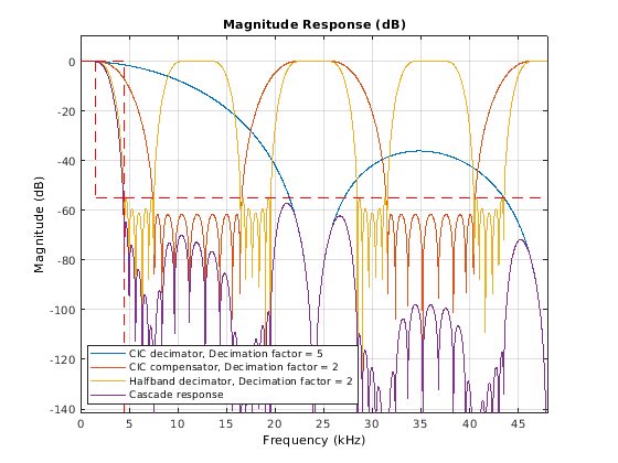 fvtool | generatehdl | getDecimationFactors | getFilterOrders | getFilters | groupDelay | visualizeFilterStages
