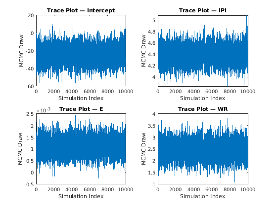 Функция повторяет шаги 1 и 2 до сходимости. Чтобы оценить сходимость, постройте график трассировки выборки.