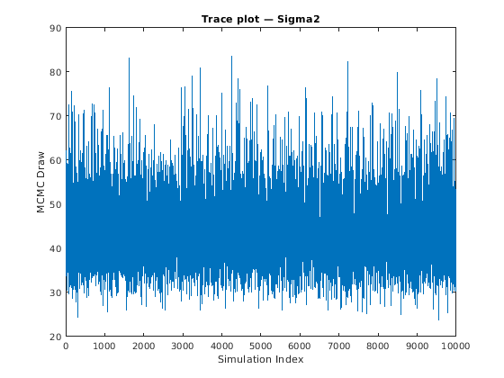 Если вы задаете BetaStart, затем simulate чертит значение σ 2 от π (σ 2|β, X, y), чтобы запустить сэмплер Гиббса. simulate не возвращает это сгенерированное значение σ 2.