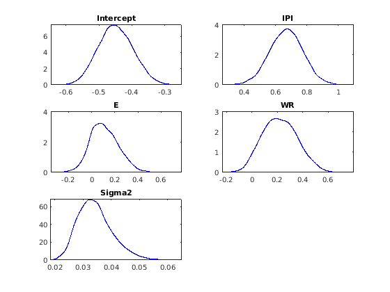 bayeslm функция может создать любой поддерживаемый предшествующий объект модели для Байесовой линейной регрессии.