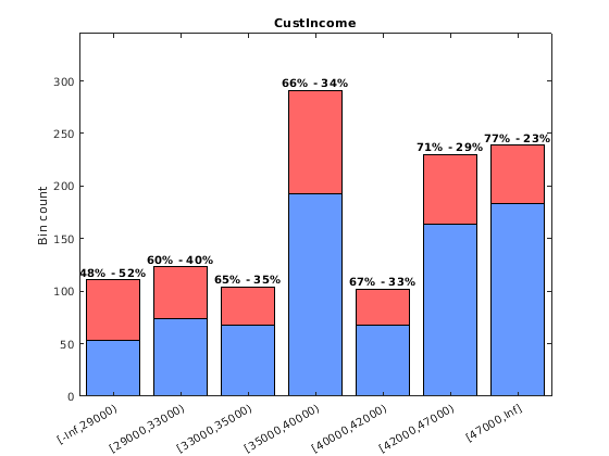 plotbins(sc,'CustIncome') xtickangle(30) legend('Location','north')