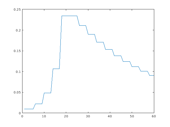 [ возвращает учебный размер шага в каждую учебную эпоху.fis,trainError,stepSize]