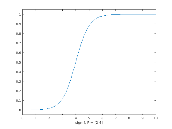 Y = evalmf(mf,X);Здесь, XP, и Y соответствуйте x, params, и y аргументы sigmf, соответственно.