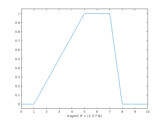 Y = evalmf(mf,X);Здесь, XP, и Y соответствуйте x, params, и y аргументы trapmf, соответственно.