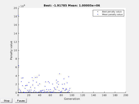 Optimization terminated: average change in the fitness value less than options.FunctionTolerance and constraint violation is less than options.ConstraintTolerance.