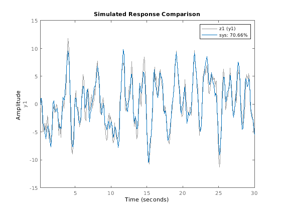 Результат подгонки NRMSE вы получаете с compare может не точно совпадать с подходящим значением, о котором сообщают в идентификации модели. Эти различия обычно являются результатом несоответствий в начальных условиях, и в различиях в значениях по умолчанию горизонта прогноза для идентификации и для валидации. Различия обычно малы и не должны влиять на ваш рабочий процесс выбора и валидации модели. Для получения дополнительной информации смотрите Различия в Значении Подгонки Твердости Между Идентификацией Модели и сравните Команду.