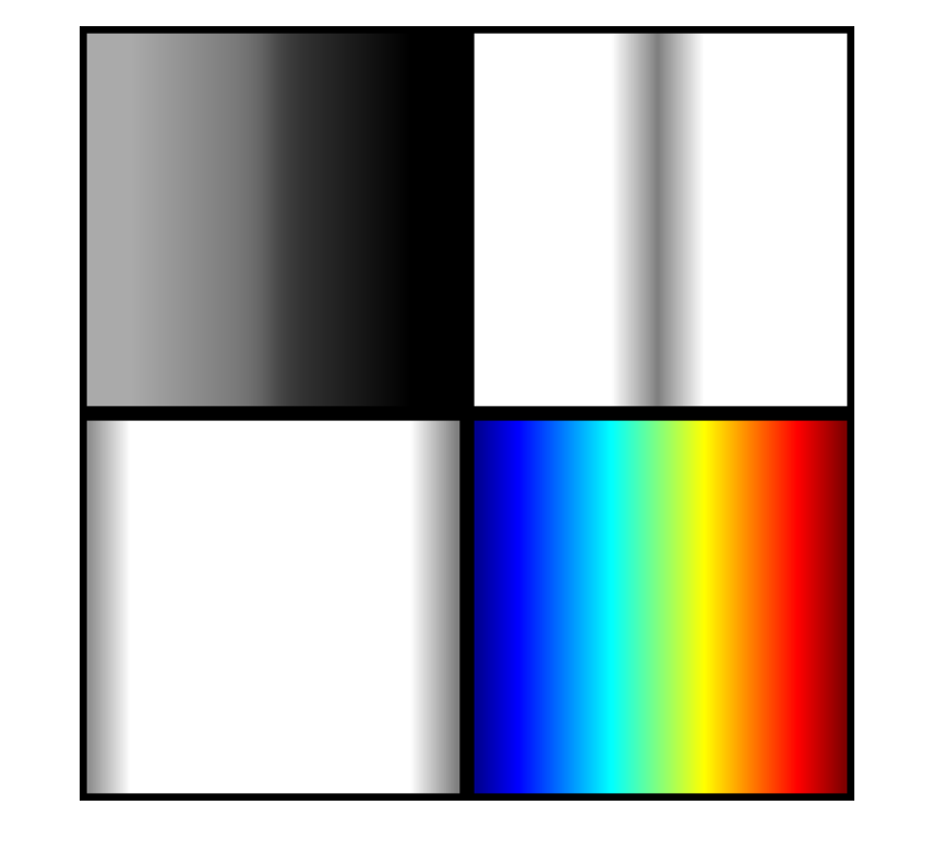 Когда изображение плоскости оттенка в предыдущей фигуре иллюстрирует, значения оттенка делают линейный переход от высоко до низко. Если вы сравниваете изображение плоскости оттенка с оригинальным изображением, вы видите, что оттенки темно-синего цвета имеют самые высокие значения, и оттенки темно-красного цвета имеют самые низкие значения. (Как утверждено ранее, существуют значения красного цвета на обоих концах шкалы оттенка. Чтобы избежать беспорядка, демонстрационное изображение использует только красные значения с начала области значений оттенка.)