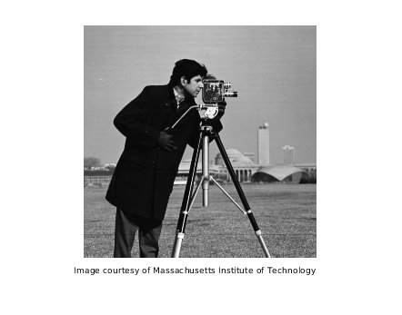 original = imread('cameraman.tif'); imshow(original) text(size(original,2),size(original,1)+15, ... 'Image courtesy of Massachusetts Institute of Technology', ... 'FontSize',7,'HorizontalAlignment','right');