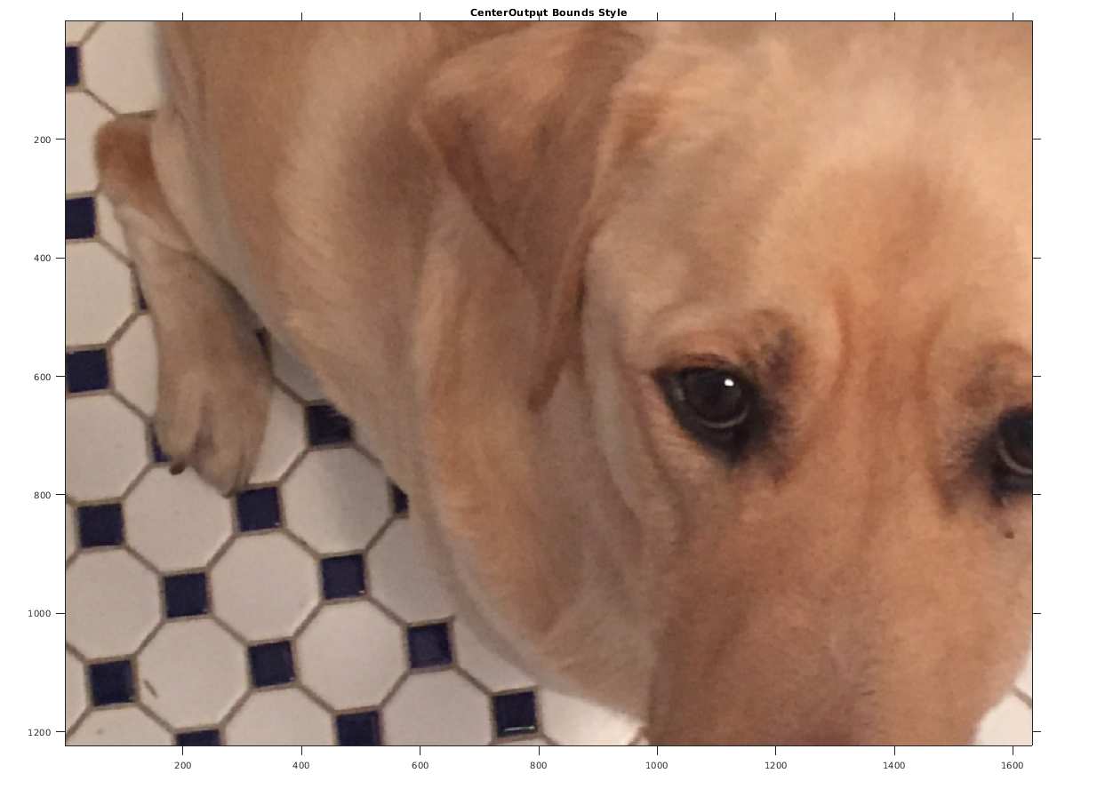 'CenterOutput'Сосредоточьте представление в центре изображения на выходном пробеле, позволяя переводу переместить выходное изображение из представления.