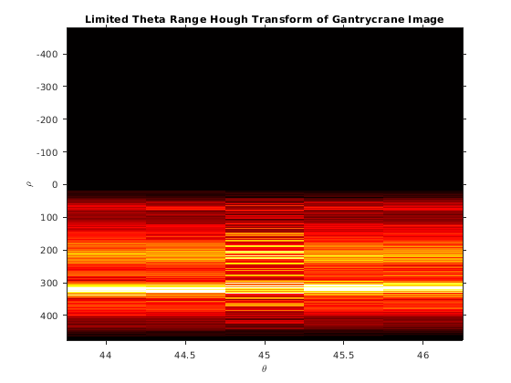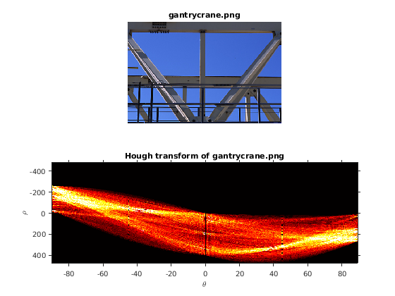= hough(BW)BW. hough функция спроектирована, чтобы обнаружить линии. Функция использует параметрическое представление линии: rho = x*cos(theta) + y*sin(theta). Функция возвращает rho, расстояние от источника до линии вдоль векторного перпендикуляра к линии и theta, угол в градусах между x - ось и этим вектором. Функция также возвращает Стандартное Преобразование Хафа, H, который является матрицей пространства параметров, строки и столбцы которой соответствуют rho и значениям theta соответственно. Для получения дополнительной информации см. Алгоритмы.