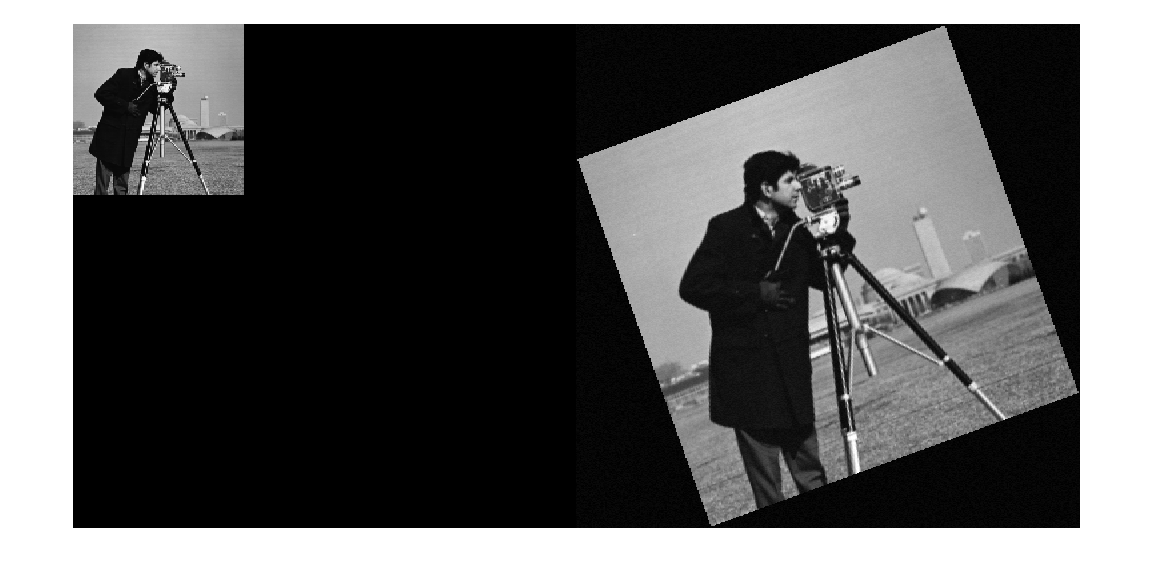 оценивает геометрическое преобразование, которое выравнивает изображение, tform = imregcorr(moving,Rmoving,fixed,Rfixed,___)moving, со ссылочным изображением, fixed. Rmoving и Rfixed пространственные объекты привязки, которые содержат пространственную информацию о moving и fixed изображения, соответственно. Возвращенный объект преобразования, tform, задает отображение точки в системе мировой координаты.
